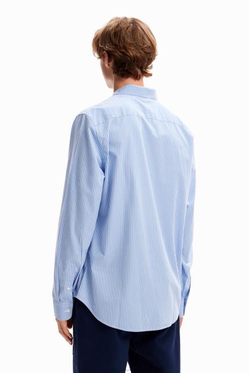 חולצה עם שרוולים ארוכים מפופלין פסים במרקם רך מאוד וכיסים קדמיים עם פרטים מנוגדים.